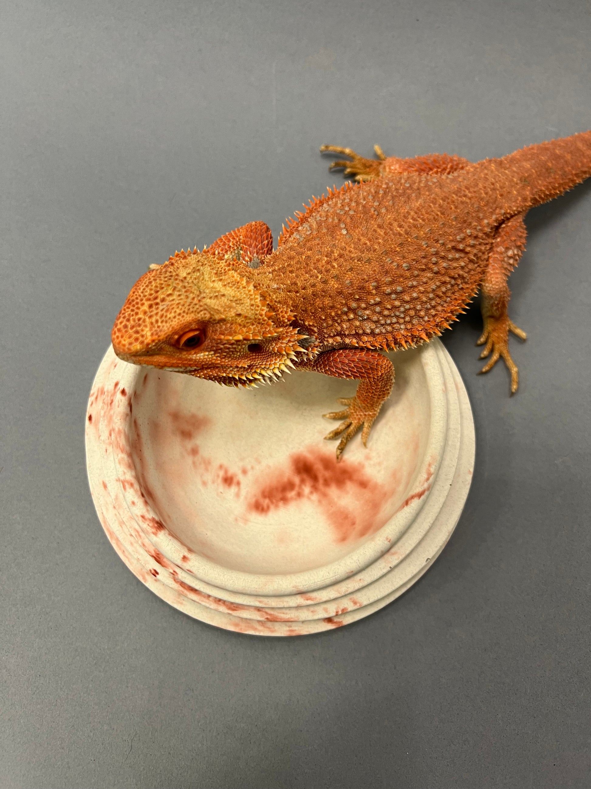 Inserire nella zona del terrario che si preferisce (consigliamo zona fredda se si utilizza per l’acqua così da evitare evaporazione eccessiva). Sconsigliano l’uso della ciotola per contenere tarme della farina o altri insetti poiché riuscirebbero a scappare data la superficie “ruvida”.