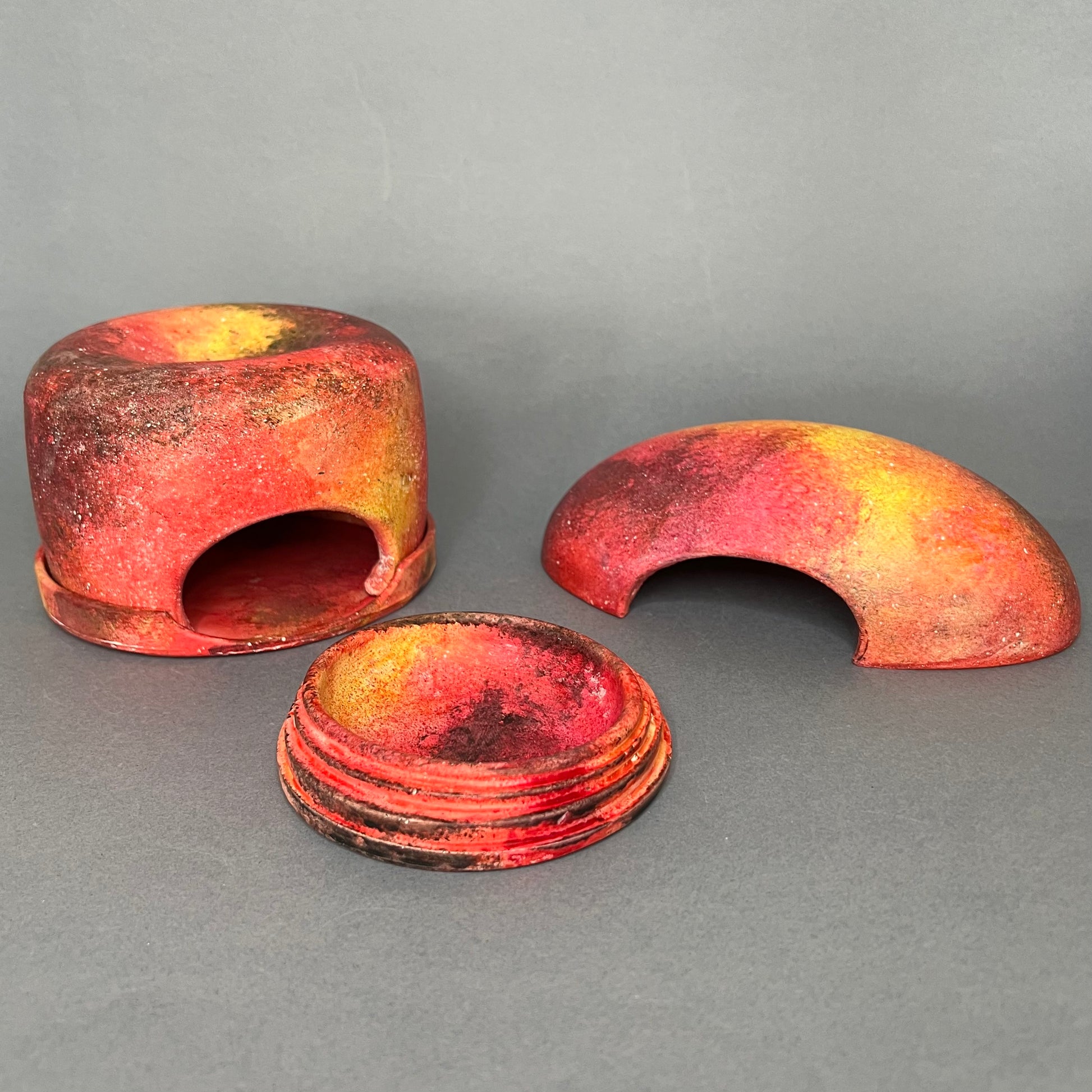 Essendo pezzi dipinti a mano e più delicati proprio per questo, consigliamo una pulizia non aggressiva con acqua fredda e un panno in micro fibra, NON sfregare forte il prodotto. Le tane e le ciotole potrebbero perdere colore in eccesso o scolorirsi con una abrasione eccessiva.