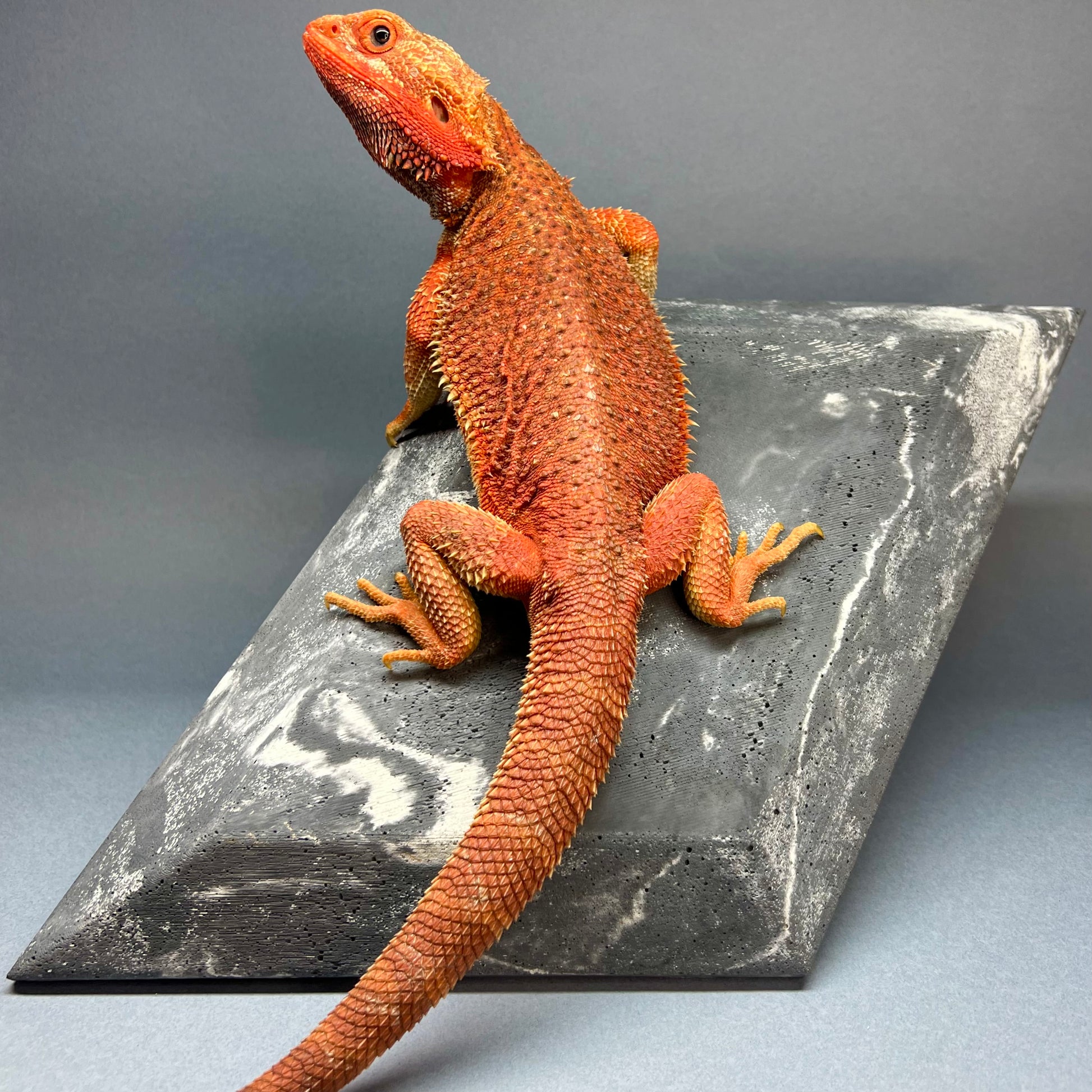 SunStone è una piattaforma per creare la zona basking, è ideale per sauri di piccole e medie dimensioni. Non si surriscalda ma regola la temperatura man mano con la fonte di calore, e una volta spente le luci/impianti di riscaldamento resta calda per ore rilasciando gradualmente calore proprio come le rocce in natura.